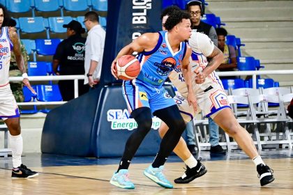 Jefrey Abreu, del club Los Prados, es marcado en la defensa por el jugado de San Lázaro, Anderson Mirambeaux. EL NUEVO DIARIO, SANTO DOMINGO, RD.- El nativo Jefrey Abreu y el refuerzo BJ Fiztgerald co...