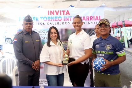 La Ministra de Interior y Policía, Faride Raful al recibir los trofeos y medallas por Mía Liberato, representante de la empresa SeaBoard e integrante de la selección nacional femenina de Volibol Sub23...