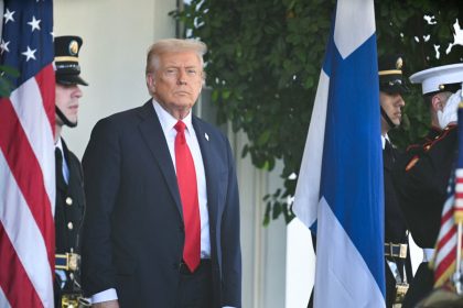 El presidente de Estados Unidos, Donald Trump, espera la llegada del presidente finlandés, Alexander Stubb, y del primer ministro, Petteri Orpo, al Ala Oeste de la Casa Blanca en Washington. Foto/ Jim...