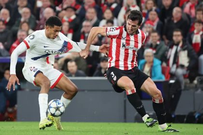 Acción del partido entre el Athletic y el PSG. EL NUEVO DIARIO, BILBAO- Unai Simon mantuvo a flote la esperanza del Athletic de estar en el playoff de la Liga de La Campeones al frenar al vigente camp...